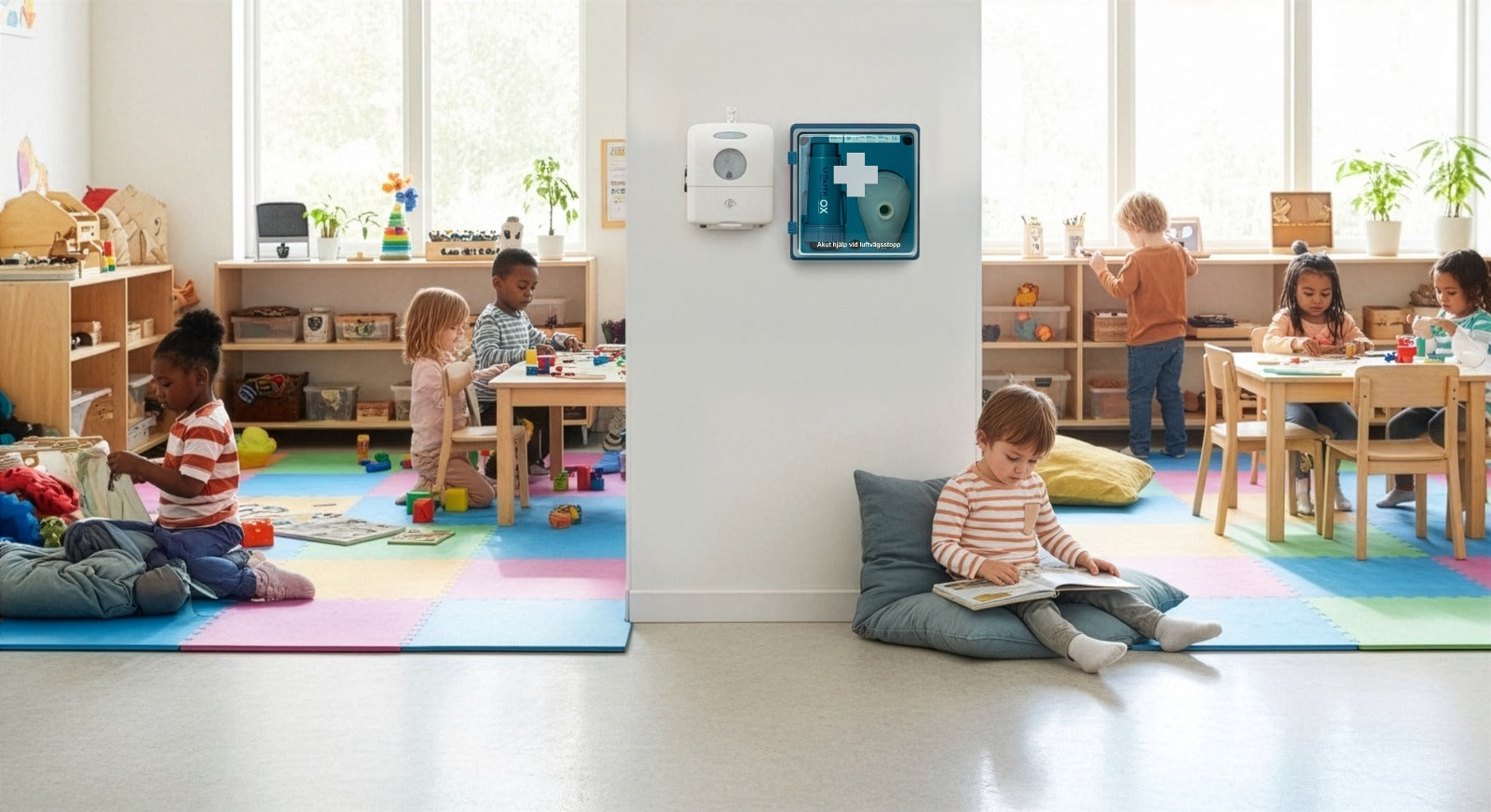Ventilox Väggstation lämpar sig för arbetsplatser, skolor, restauranger, hotell, träningsanläggningar, äldreomsorg och andra offentliga miljöer där säkerhet och beredskap är en självklar del av verksamheten.